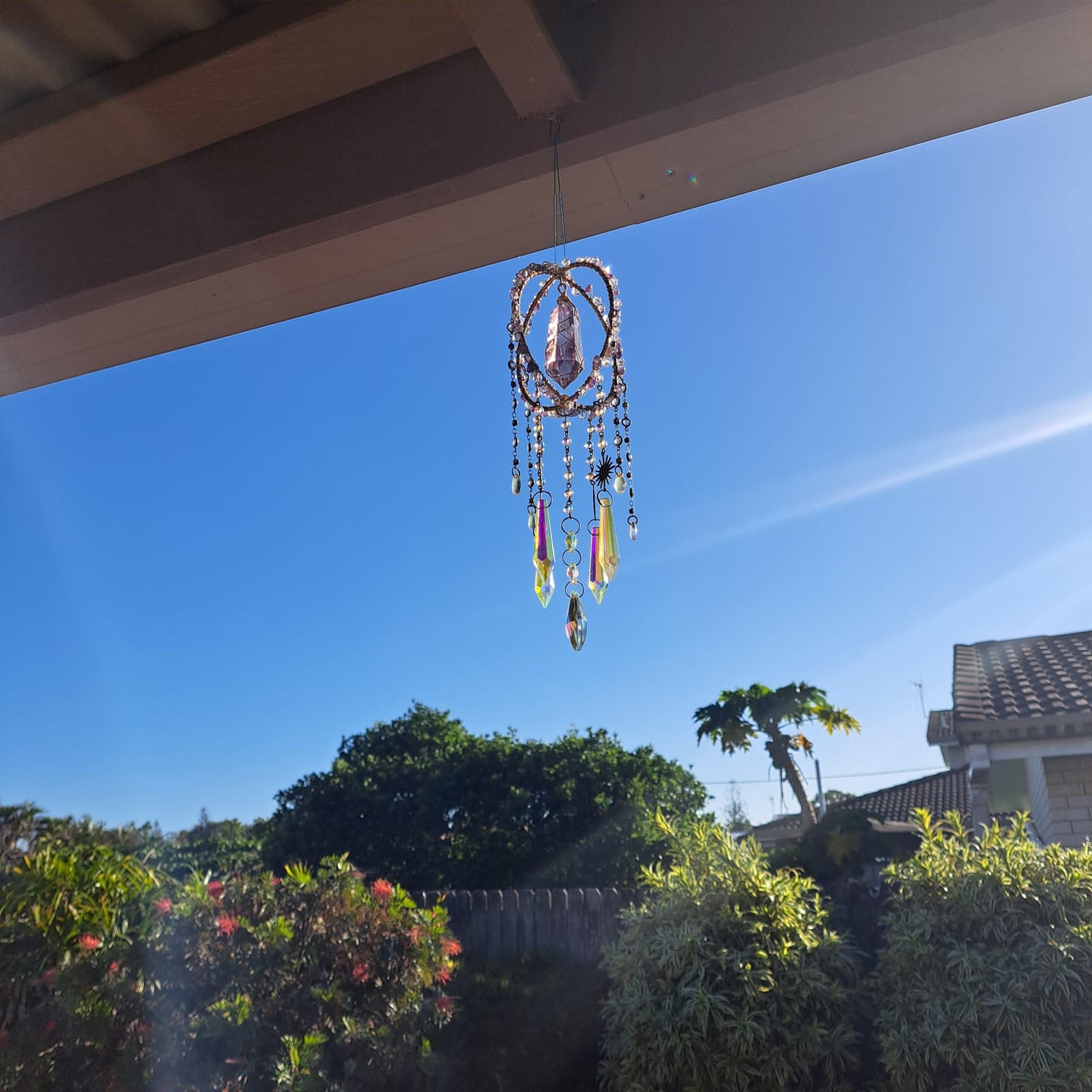Hang your Divinity Suncatcher by any window to turn your room into a sparkling oasis of sunlit sparkles. Enhance your spiritual being as you charge your crystals in the sunlight and moonlight.