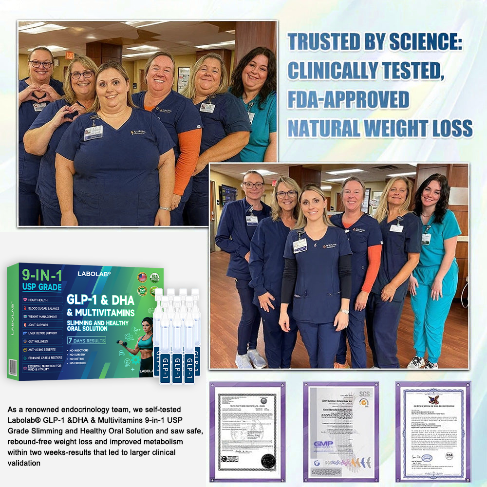 "We are a team of endocrinology experts, most of whom have personally experienced obesity and its related complications. This is why we are dedicated to developing safe, natural, and effective solutions to improve metabolic health and support weight management. Over the course of 12 years of research, our team members first trialed the solution themselves, achieving significant weight reduction without rebound or side effects. We then conducted extensive studies and clinical trials involving more than 5,000 participants, which further confirmed that Labolab® GLP-1 &DHA & Multivitamins 9-in-1 USP Grade Slimming and Healthy Oral Solution delivers remarkable and lasting benefits in metabolic regulation, appetite control, and overall health improvement for individuals over 30 struggling with obesity. Supported by modern medical research, Labolab® GLP-1 &DHA & Multivitamins 9-in-1 USP Grade Slimming and Healthy Oral Solution has passed the FDA’s rigorous regulatory review and certification, with its effectiveness and compliance officially validated. It stands as a trustworthy, science-driven choice, especially for those seeking a natural, safe, and effective approach to weight management and comprehensive health support. Whether you’ve been struggling with weight for years or just want to protect your health as you age, this is a safe, science-backed solution you can trust."